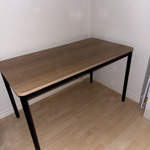 Mått: B 140 cm, D 60 cm, H 73 cm (höjden går att justera några cm).