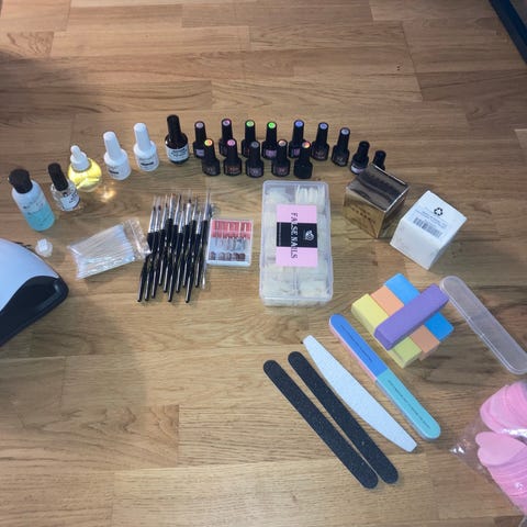 Victoria Vynn Fast Tips nageltippar med LED-lampa. Setet innehåller två askar med genomskinliga nageltippar i olika storlekar samt en flexibel LED-lampa med rund fot. Nageltipparna är avsedda för förlängning och formning av naglar vid manikyrarbete. LED-lampan används för härdning av material på naglarna.