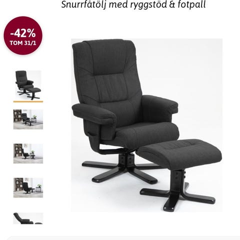 Säljer min sköna, fällbara Filip fåtölj från Mio pga av nytt soffköp.