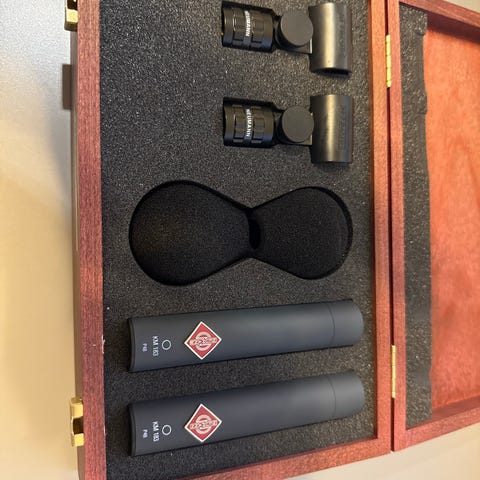 De låter identiskt, har samma upptagningsförmåga (njure) och har fungerande -10 dB pad, men har unset olika färg på lacken. Båda har Neumann-loggan kvar, vilket ofta inte är fallet för de här tidiga exemplaren. De kommer i originalboxar med matchande serienummer och nycklar till.