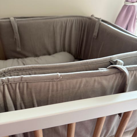 Bild 3-4: oanvänt Linnebeige spjälsängsskydd (Jotex)