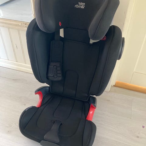 Britax Römer Adventure bälteskudde för barn i viktklassen 15–36 kg. Modellen är en framåtvänd bältesstol med hög rygg och sidokrockskydd. Stolen används tillsammans med bilens trepunktsbälte. Justerbart nackstöd gör det möjligt att anpassa höjden efter barnets längd. Klädseln är i svart tyg. Lämplig för montering i bilens passagerarsäte eller baksäte enligt bilens och stolens anvisningar.