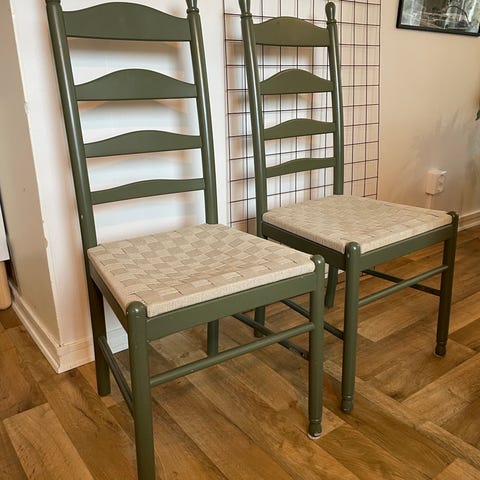 Två av stolarna är lite ranka men går att limma ihop. Säljes helst ihop men kan även säljas separat.