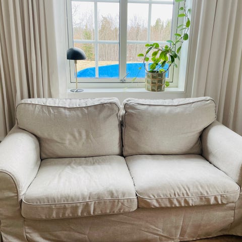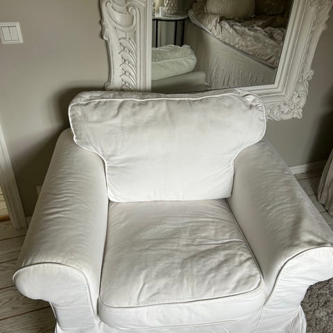 Vit Ektorp fåtölj, stått i rum som sällan används. Klädsel helt nytvättat.