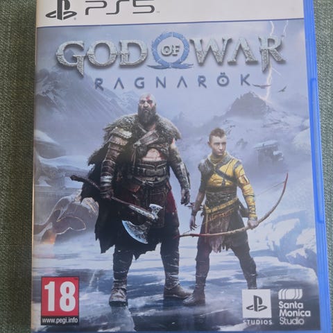Sony God of War Ragnarök spel för Playstation 5. Fysiskt PS5-spel på skiva i plastfodral. Actionäventyrsspel med PEGI 18-års åldersgräns. Utvecklat av Santa Monica Studio och utgivet av Sony Interactive Entertainment.