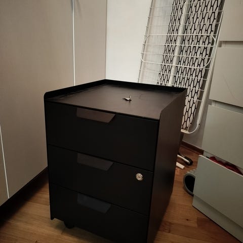 Hurts med 3 lådor, i svart utförande. Lådornas insidor är vita. Lämplig för användning i sovrum eller kontor.
