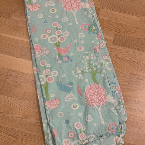 Stolsdyna till IKEA Antilop barnstol. Dynan har ett mönster i gröna och blå nyanser. Den är försedd med dragkedja.
