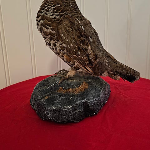 Uppstoppad räv, hyena päls, fågel och bock kranium