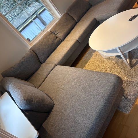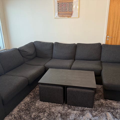 Stor hörnsoffa med soffbord