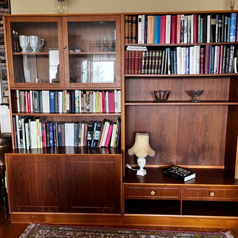 Material: Hyllan är ofta fanerad i jakaranda (även kallat palisander) eller valnöt.