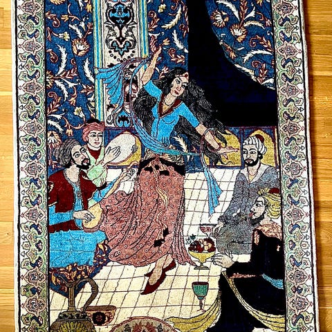 Passar exempelvis, att hängas på vägen eller ramas in som tavla eller som liten golvmatta i mindre golvyta.