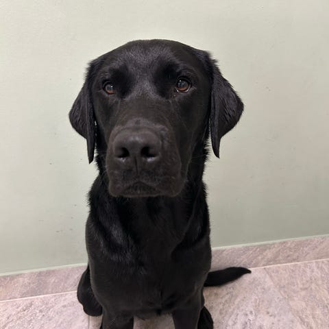 Han är en lycklig, kärleksfull och energisk labrador kille som gillar att vara lös med oss när vi sysslar på gården. Dobby är van vid många olika sorters hundkompisar och funkar bra med andra hundar i alla storlekar.