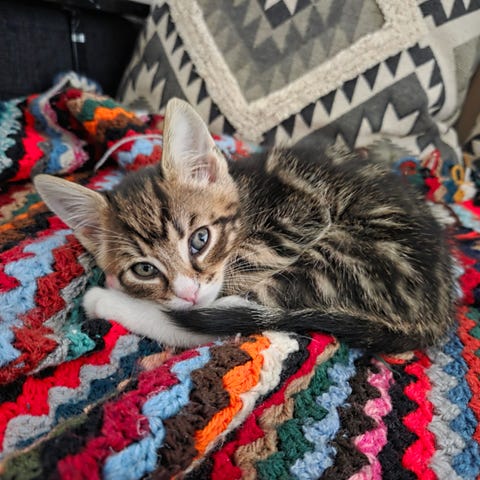 * Ligger gärna i knät på en filt om hon får komma själv
