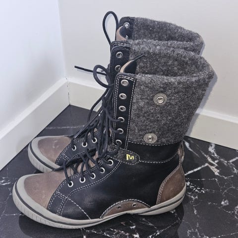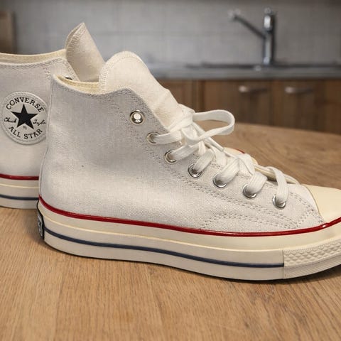 Converse All Star sneakers i storlek 39. Höga svarta mockatyg skor med snörning hela vägen upp och gummisula. Insidan har mönstrat foder och skorna har klassisk All Star-logga på hälen. Passar som vardagsskor eller fritidsskor.