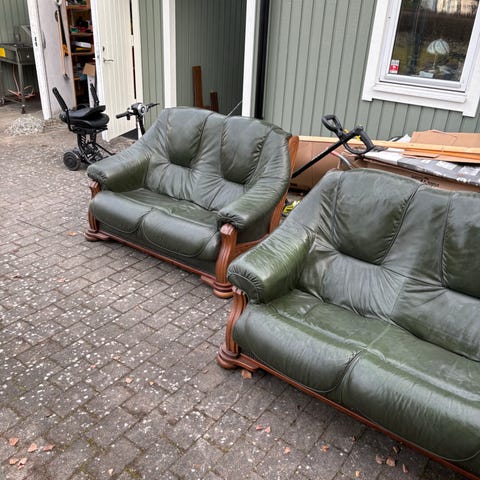 En 3 sitts 210cm lâng, 96cm hög, en tvåsitts 155cm lâng, 96cm hög + tillhörande pall.