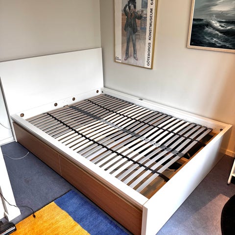 Ingår: Sängram, ribbotten och bäddmadrass.