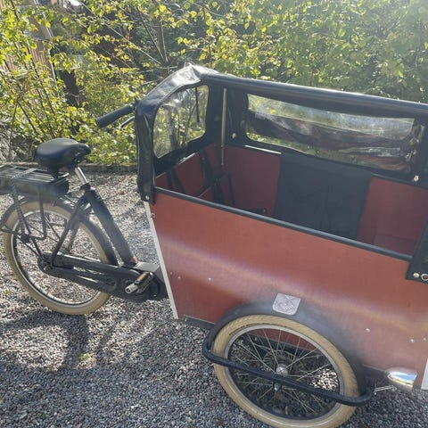 Snygg och praktisk eldriven lådcykel från Yosemite. Bra skick. 7 växlar och 5 kraftlägen. Belysning fram och bak. Sittplatser med möjlighet att spänna fast barnen. Rymmer fyra mindre barn eller två lite större barn.