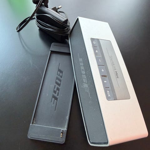 Bose SoundLink Mini Bluetooth Högtalare. Denna kompakta högtalare levererar bra och kraftfullt ljud. Den är designad för att vara enkel att ta med sig och kan anslutas trådlöst till enheter via Bluetooth. Högtalaren har även en AUX-ingång för anslutning med kabel. Laddningsvagga medföljer samt strömkabel.