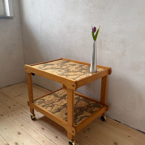 Vintage furu barvagn serveringsvagn vagn bord retro