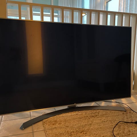 Samsung TV i svart färg. Platt skärm med bordsstativ. Fjärrkontroll medföljer enligt bild. Passar för användning i vardagsrum eller sovrum för tv-tittande och anslutning av externa enheter via tillgängliga ingångar på baksidan eller sidan av tv:n.