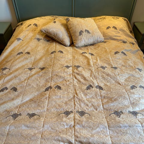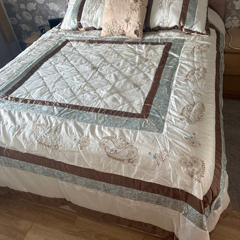 Överkast med 4 kuddfodraler med sängkappa köpta från Em möbler