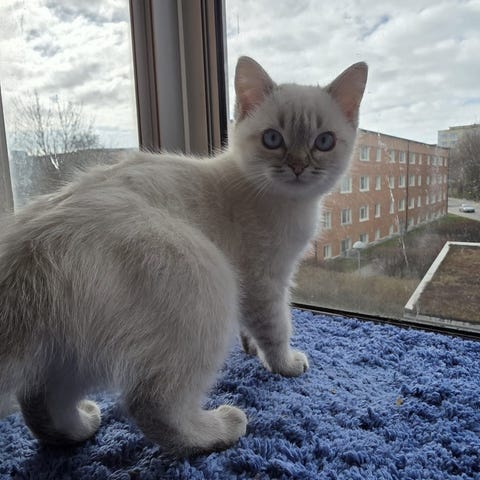 Şino är en Brittisk korthår vit/liliac med stamtavla från sverak, mycket god temparement, han vill ha kattungar och söker en renrasig hona med stamtavla.
