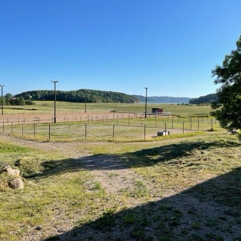 Lösdriftsplats med stor hage, inhängnad ridbana samt tillgång till box.