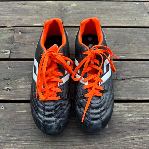 Köpte helt nya skor till min son som skulle börja spela fotboll men efter 6,7 gånger ville han inte göra det mer så dessa skor är som nya. Stl 32 köpta på intersport för 2 år sedan.