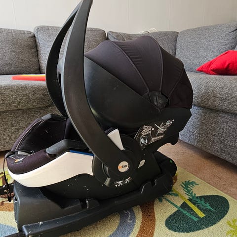 Britax Römer bilbarnstol i Bilbarnstolen är bakåtvänd och kommer med bas som underlättar montering i bilen. Klädseln är i svart tyg och stolen har bärhandtag samt sufflett. Passar för barn inom storleksintervallet för grupp 15 enligt tillverkarens rekommendationer. Basen har tydliga instruktioner för korrekt fastsättning i bilen.