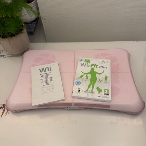 Nintendo Wii Fit Plus balansbräda i vit färg för Nintendo Wii. Produkten används tillsammans med kompatibla spel för träning, balansövningar och andra aktivitetsbaserade spelmoment. Passar för användning inomhus och kopplas trådlöst till Nintendo Wii-konsolen.