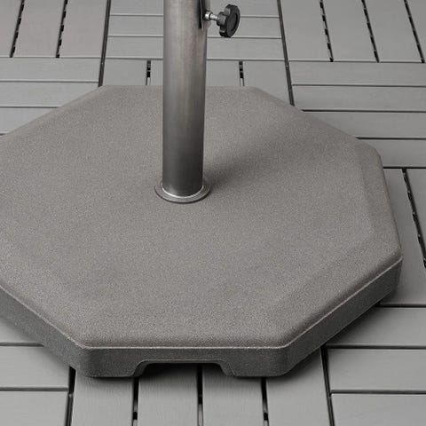 En stabil parasollfot som håller stora parasoller på plats. Den är gjord av tålig betong och har utstansade handtag som gör den enklare att flytta.