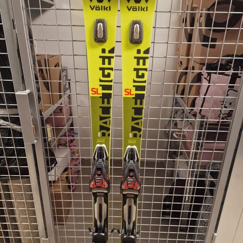 Völkl Racetiger SL skidor i gul färg Junior-modell. Längd 150, i riktigt bra skick.