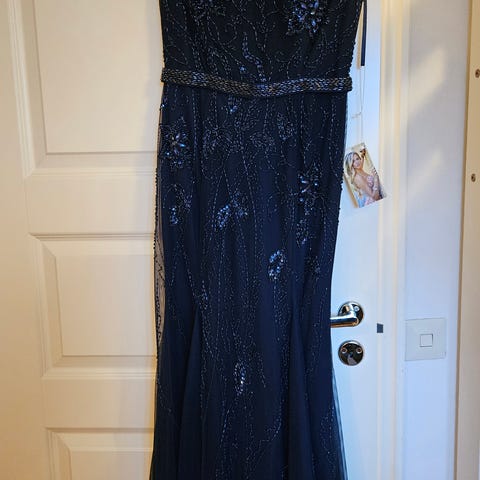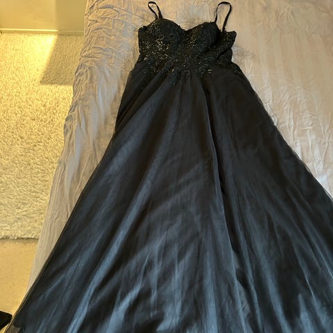 Festklänning/balklänning använd två gånger. Mycket fin och festlig. Viss stretch i tyget, så modellen passar en liten medium samt stor medium.
