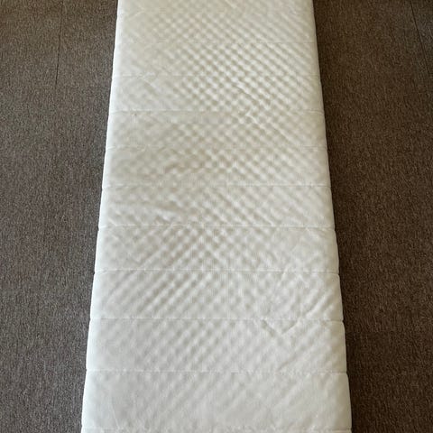 IKEA VYSSA madrass i vitt tyg. Rektangulär madrass som passar till barnsäng eller spjälsäng. Ytan är quiltad med lätt vaddering och har ett avtagbart överdrag som kan tvättas i 60 grader.