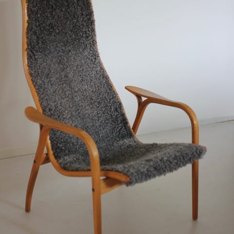 Helt ny och oanvänd lamino fåtölj i oljad ek med Scandinavian grey fårskinn.