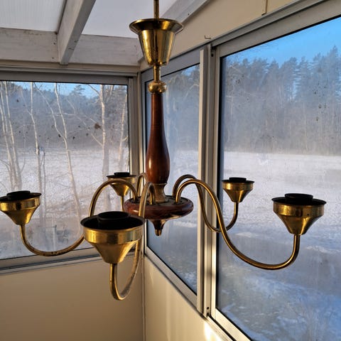 Taklampa från 50-talet. Originalskärmar saknas (troligen med klämma på själva lampgloben).