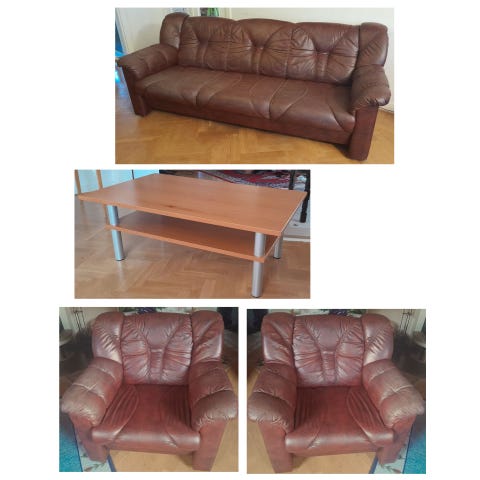 Säljer en komplett soffgrupp bestående av 3-sits, 2-sits och fåtölj samt tillhörande soffbord.