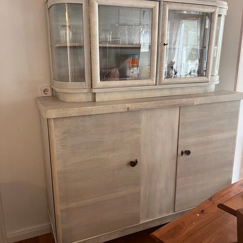 Vitrinskåp med glasdörrar och belysning säljes.