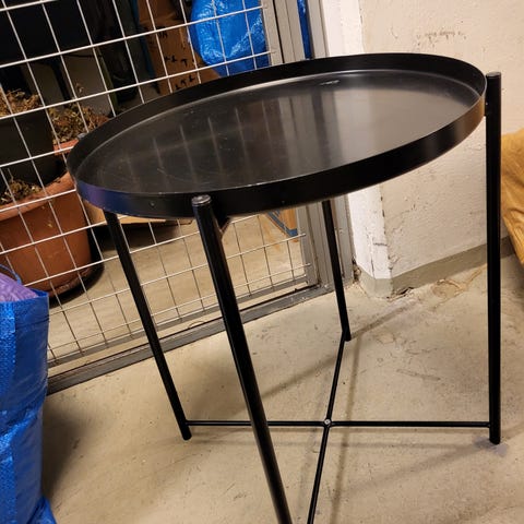 Stilrent svart sidobord med avtagbar bricka. Perfekt som soffbord, sängbord eller extra avlastningsbord. Lätt och smidigt att flytta.