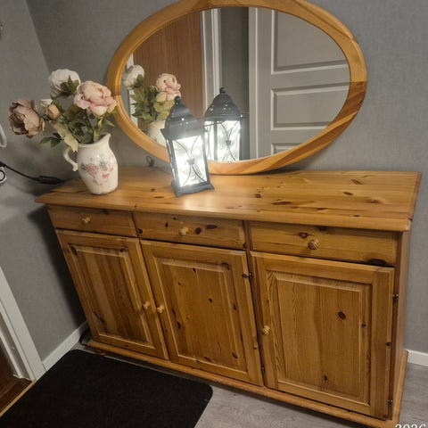 Byrå och spegel i furu trä