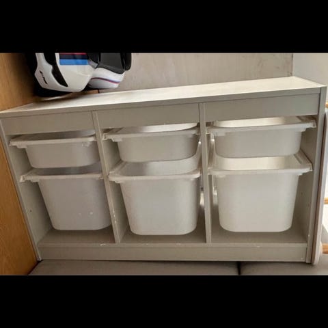 IKEA förvaringshylla med plastlådor för barn