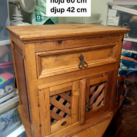 Skåp trä brun med hyllor och lådor
