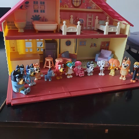 Bluey lekhus. Sparsamt använd. Två Blueyfigurer och en Bingo ingår.