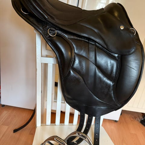 Säljer vår fina Hrimnir Pro sadel . Den är 17,5”. Välvårdad. Permanentstoppad. Jätteskön att rida i. Det enda som är med den är att ena lilla Hrimnirmärket tappat en plast grej som satt över. Inget som påverkar! Snyggare utan.