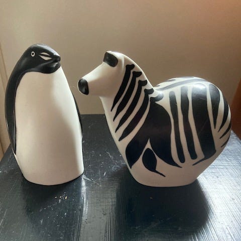 Samling glasfigurer i form av olika djur i klart glas. Figurerna föreställer bland annat häst, zebra, elefant, flodhäst och fågel. Passar som prydnadsföremål i hylla, vitrinskåp eller på sideboard. Alla figurer är fristående och tillverkade i massivt klart glas med slipade kanter och detaljerade former.