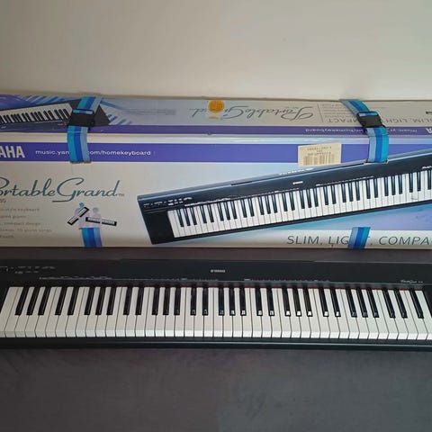 Yamaha PSR-F52 keyboard med 36 tangenter. Köptes 2026 och är i perfekt skick. Elektroniskt tangentbord med flera förinställda ljud, rytmer och funktioner, lämpligt för nybörjare och övning hemma. Levereras med nätadapter enligt bilden.