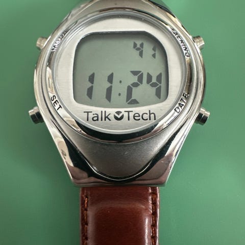 LORUS LCD Klocka, retro vintage, (NOS), 39,5 x 47 mm, stål, brunt läderarmband.