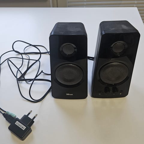 Logitech högtalare i vitt utförande. Två fristående enheter med inbyggd volymratt på ena högtalaren och kabelanslutning. Passar till dator, laptop eller annan enhet med kompatibel ljudutgång för enkel uppspelning av ljud.