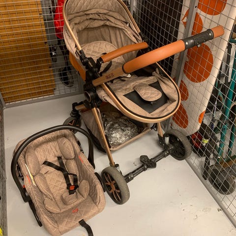 Barnvagn i bra skick, barn har använt 1,5 år. Barnagnen kan fällas ihop. Barnet kan också sitta i vagnen. Vid köpet gratis sparkcyckel.