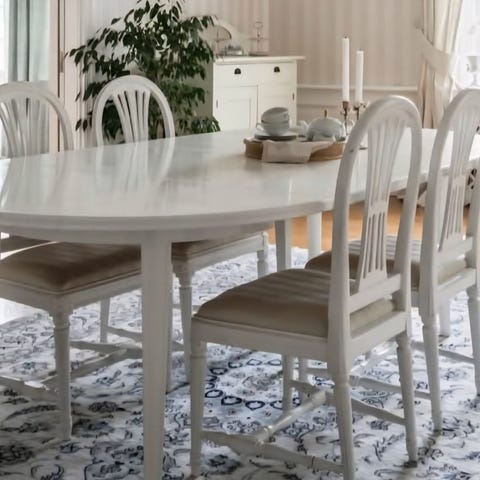 Matgrupp i gustaviansk stil bra bruksskick med 6 st stolar varav 2 st är karmstol.
